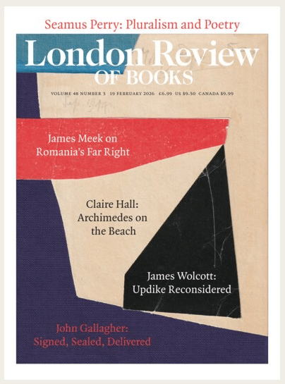 LONDON REVIEW OF BOOKS: The latest issue features Seamus Perry: Pluralism and Poetry; James Wolcott: Updike Reconsidered; James Meek on Romania’s Far Right;