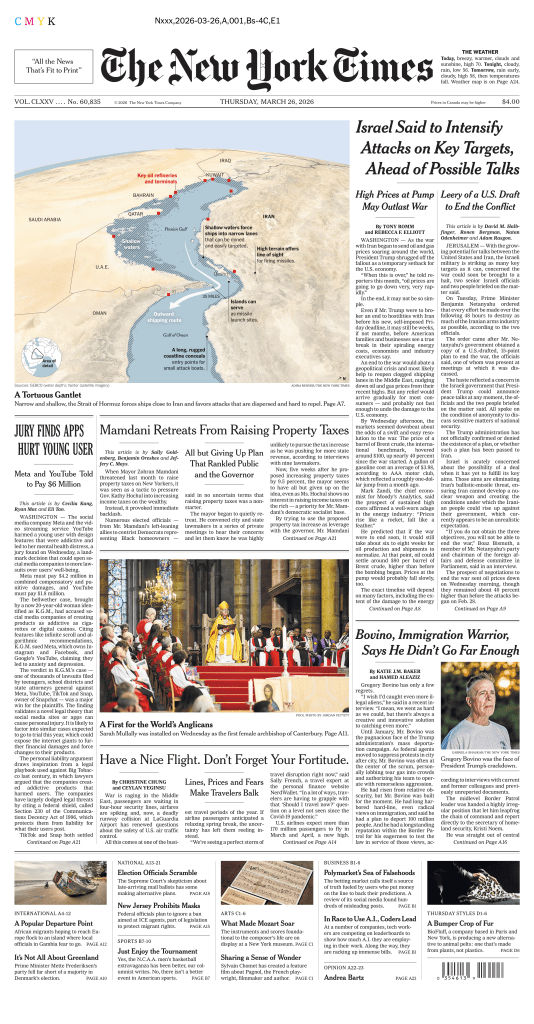 THE NEW YORK TIMES – THURSDAY, MARCH 26, 2026