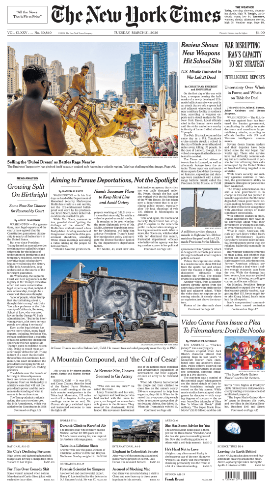THE NEW YORK TIMES – TUESDAY, MARCH 31, 2026