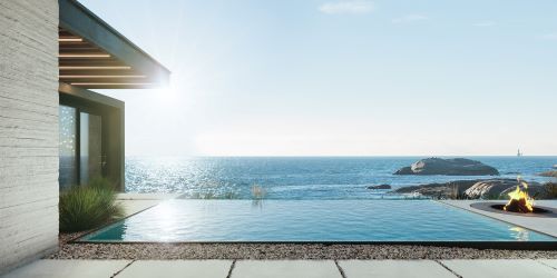 Moscow-based Kerimov Architects have designed a single-story house on a cliff, situated in Algarve, Portugal. The dwelling settles amid the lush natural surroundings and next to the ocean, generating a peaceful refuge away from the bustling city.