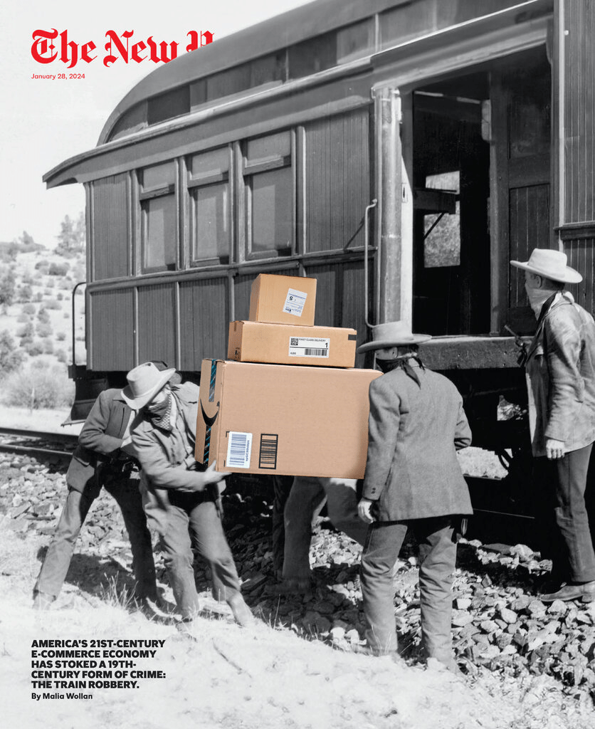 THE NEW YORK TIMES MAGAZINE (January 26, 2024): The new issue features ‘America’s 21st-Century E-Commerce Economy Has Stoked A 19th-Century Form of Crime: The Train Robbery’….