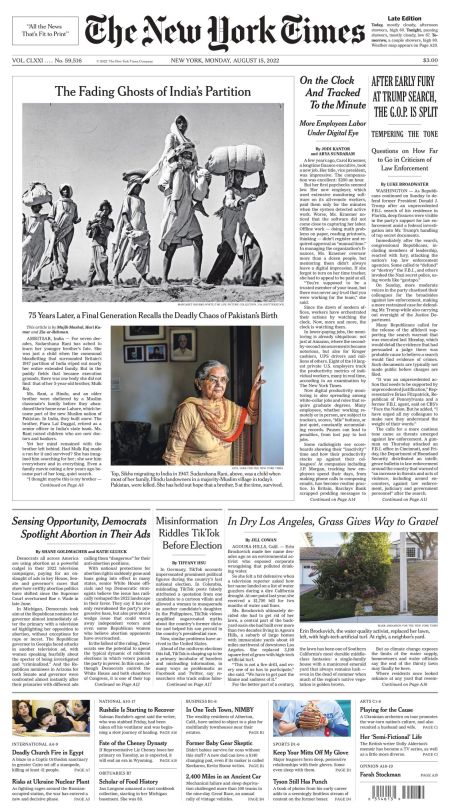 The New York Times – August 15, 2022 – Front Page August 15, 2022 1234 × 2222 The New York Times – August 15, 2022 – Front Page