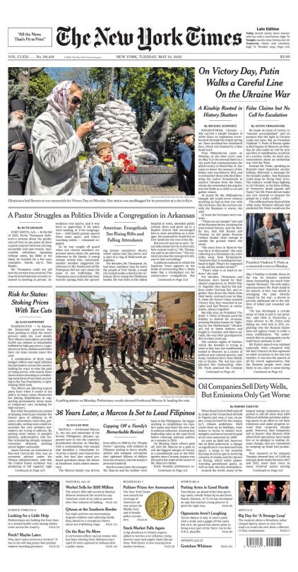 The New York Times Front Page – May 10 2022 May 10, 2022 777 × 1490 The New York Times Front Page – May 10 2022