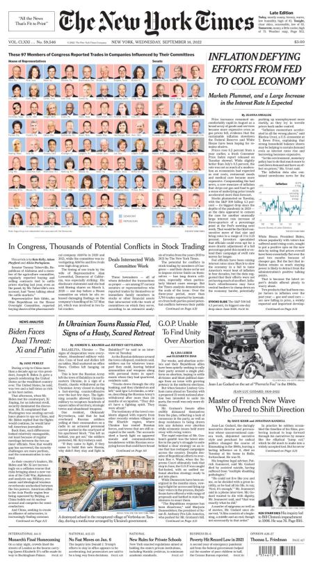 The New York Times – September 14, 2022 – Front Page September 14, 2022 927 × 1669 The New York Times – September 14, 2022 – Front Page