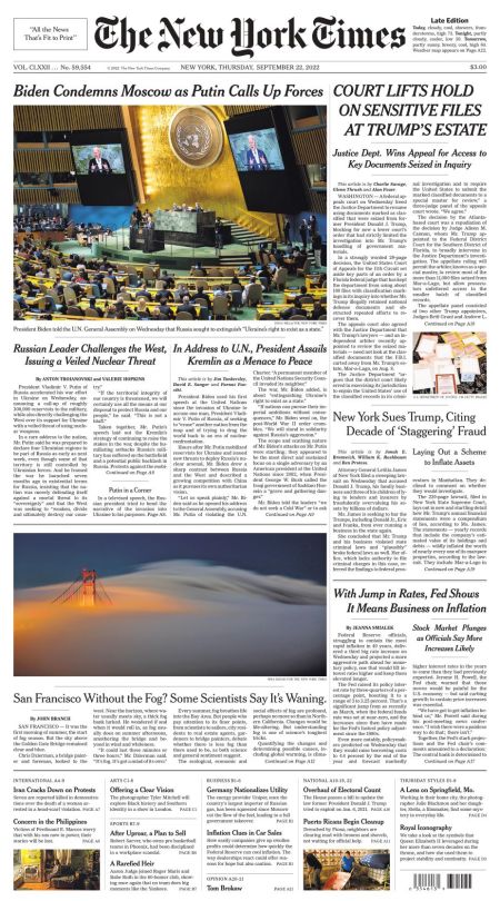 The New York Times – September 22, 2022 – Front Page September 22, 2022 927 × 1669 The New York Times – September 22, 2022 – Front Page